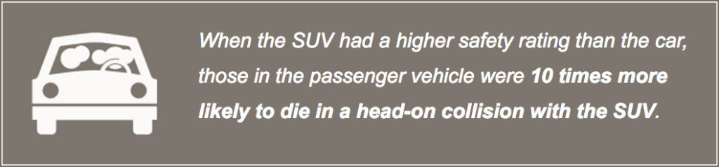Researchers attributed their findings to the mechanics involved in a head-on collision. When an SUV hits a smaller vehicle head-on, the SUV usually goes up over the hood of the smaller passenger vehicle because the bumpers on the two automobiles do not match up. The SUV ends up crushing the occupants of the smaller car in such accidents.